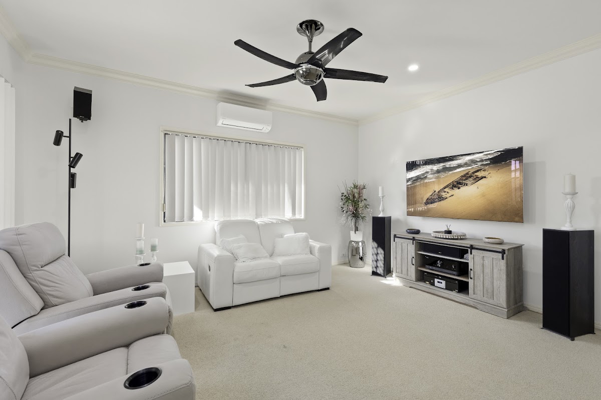 • Ceiling fans and reverse cycle split system air-conditioning to all bedrooms and media room