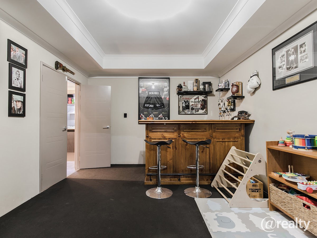 • Large games room with double doors, feature ceiling and sliding door access to the alfresco area