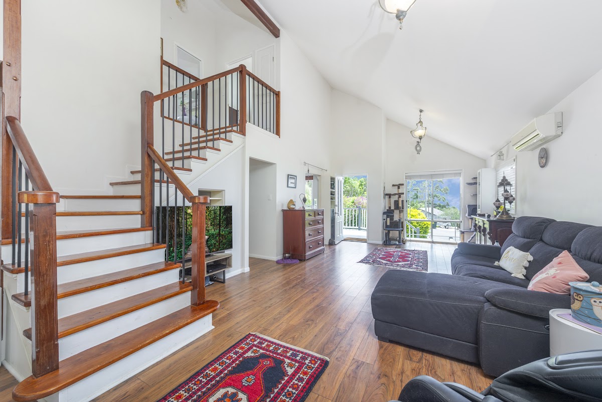 Large windows draw the outside in, bringing light and breeze into the home and the loft style ceiling, stylish timber staircase and earthy tones throughout, result in a home that is gentle and natural. The new owner will feel each day living here is an escape from the outside world in your own hinterland retreat where you can enjoy those beautiful summer breezes or watch magnificent storms roll in over the ocean.