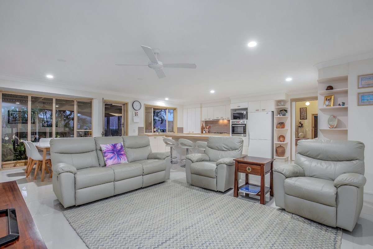 Follow the brand new flooring that stretches the length of the home through to two air conditioned living options, the newly renovated main bathroom and three additional bedrooms each with built in wardrobes, ceiling fans and brand new carpet.