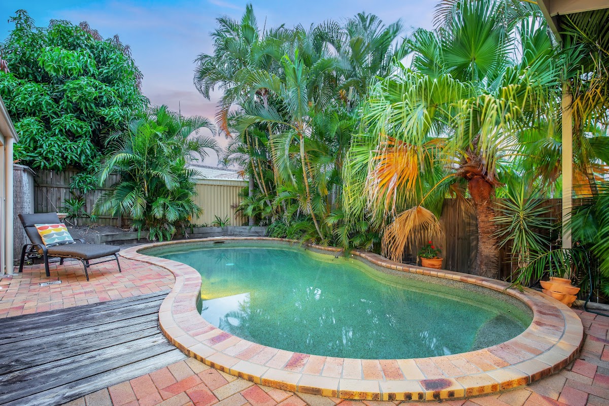 Sit outside with friends and family overlooking the sparkling tropical pool and the private, established and low maintenance garden and lawn areas.