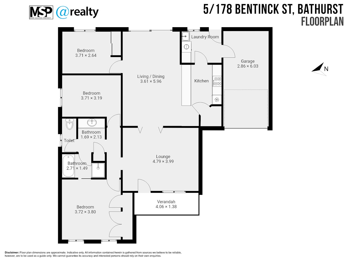 – Two outdoor living areas including front veranda plus rear courtyard.