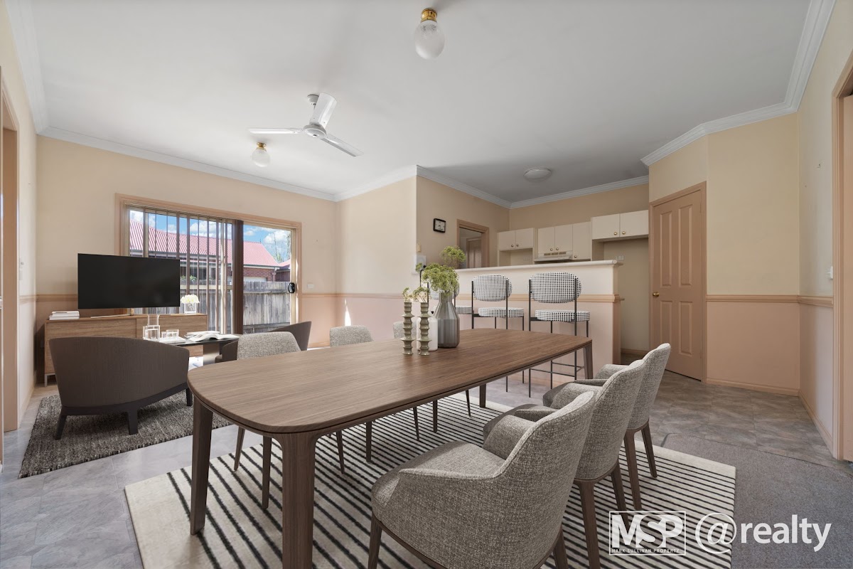 – Two living areas including front lounge room flowing to open plan kitchen / dining/ lounge area. This then flows to a wraparound private courtyard offering al-fresco dining, or space for pets.