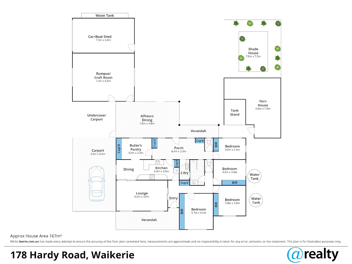 As you step inside, you’ll be greeted by a generous 167sqm of floor area, providing ample space for comfortable living. The modern kitchen with a butler’s pantry/study is perfect for those who love to cook and entertain, while the open-plan dining area creates a spacious atmosphere for family gatherings and social occasions. The house also features four bedrooms with built-in wardrobes, offering plenty of sleeping options for your family and guests.