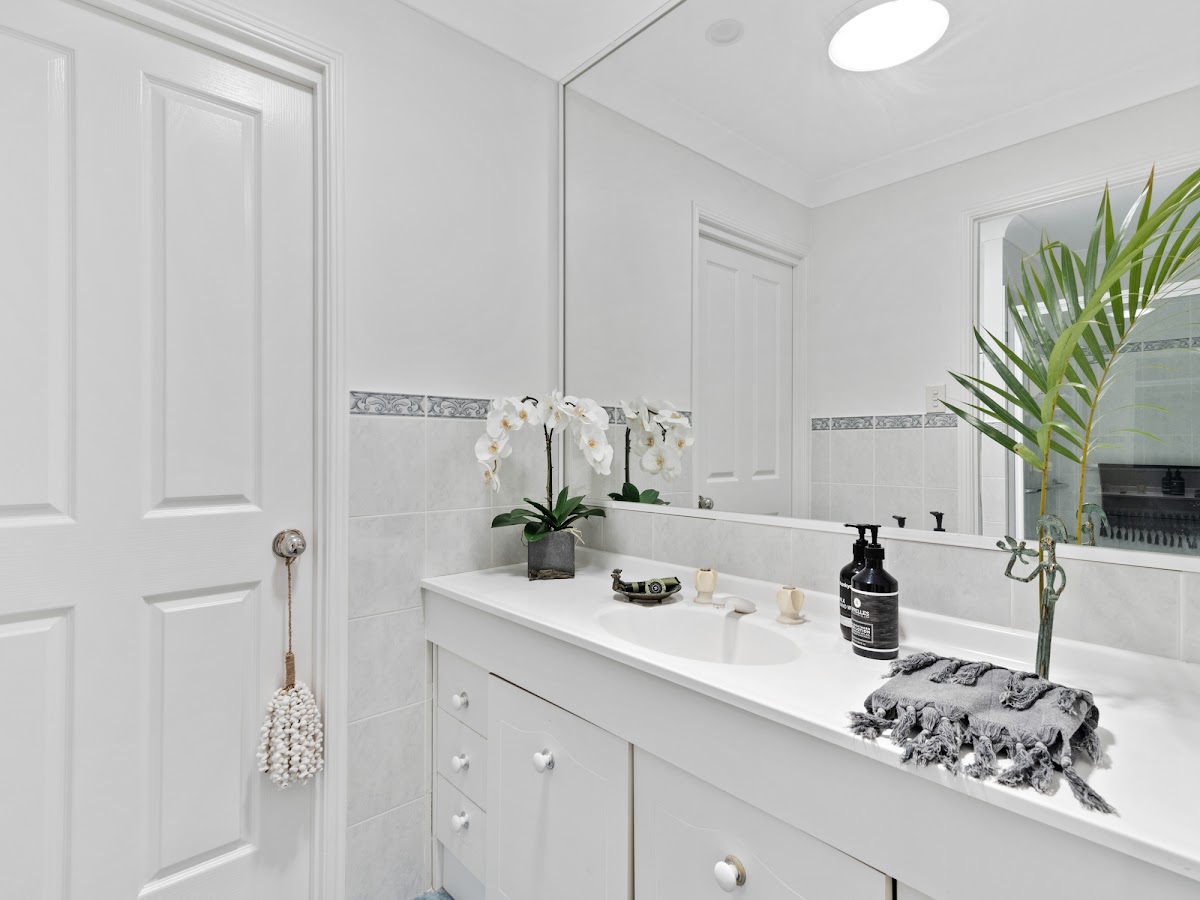 Generous open-plan living and dining area that leads out to the courtyard, an ideal space for entertaining. Adjoining the living area is a modern kitchen with stainless steel appliances that make preparing meals a breeze. The front balcony spans across the entire home provides a space to relax and take in the tranquil atmosphere of the surrounding area