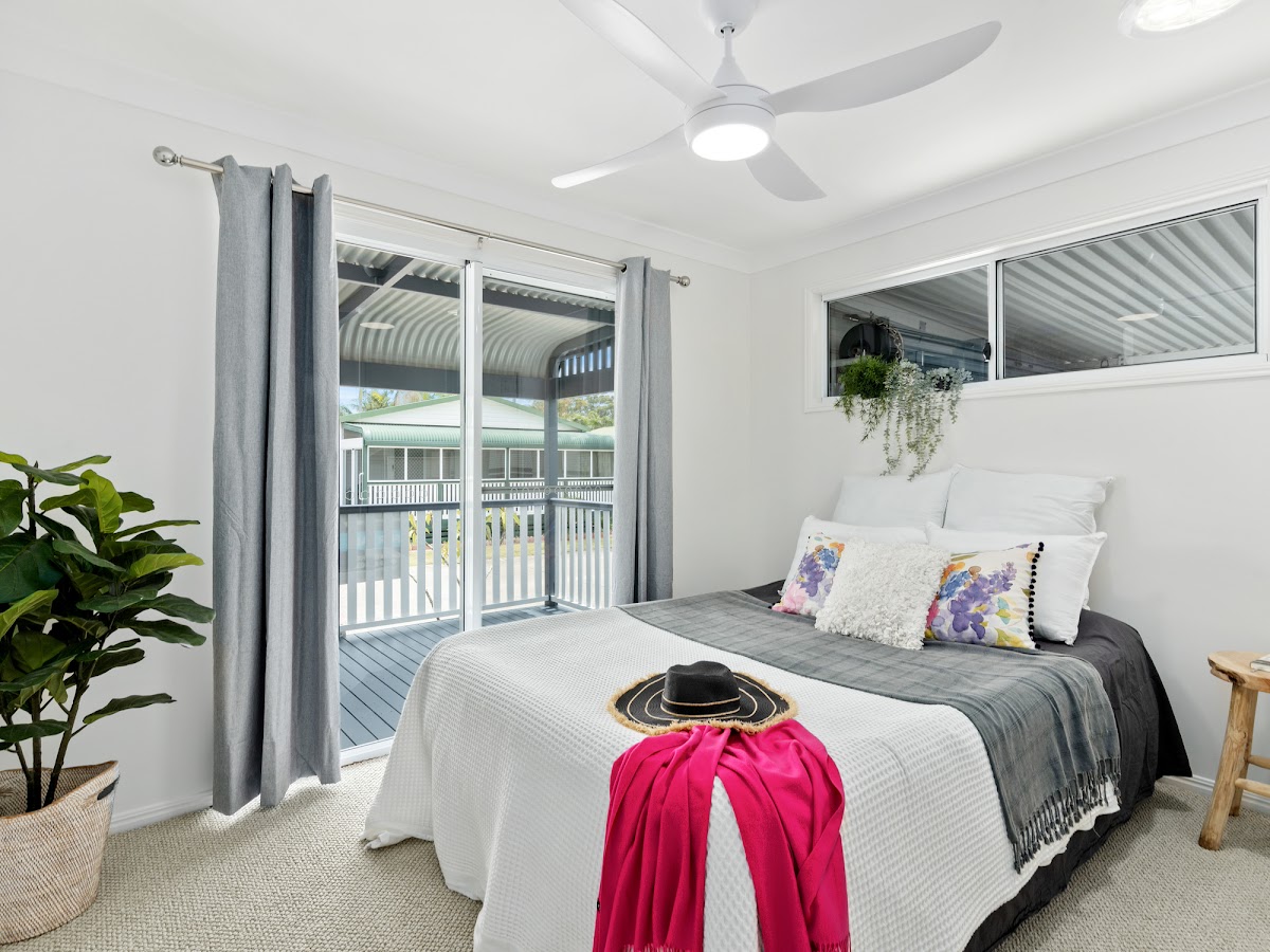Discover a coastal paradise with this exquisite three-bedroom residence in Noble Lakeside Park, Kingscliff, NSW. Noble Lakeside Park is a prestigious ‘Pet Friendly’* over 50’s lifestyle village. Spanning over 25 acres of well-maintained landscaped gardens surrounding a beautiful lake that has an extremely vibrant natural landscape, teeming with water birds, swans, and every variety of duck. Facilities include a fully licensed Lakeside Club hosting many social occasions enjoyed by residents, friends, and family. A great library, pool table, TV screen and a full kitchen plus a workshop. Choice of two swimming pools, three BBQ areas beside each of the club houses. Full tennis court, caravan parking area (if available)*. This community is active and enjoys a full social calendar of events including choir, arts & crafts, board games, bowling green and exercise classes and so much more. Friday’s Happy Hour is always popular with the residents, especially on the deck by the lake.