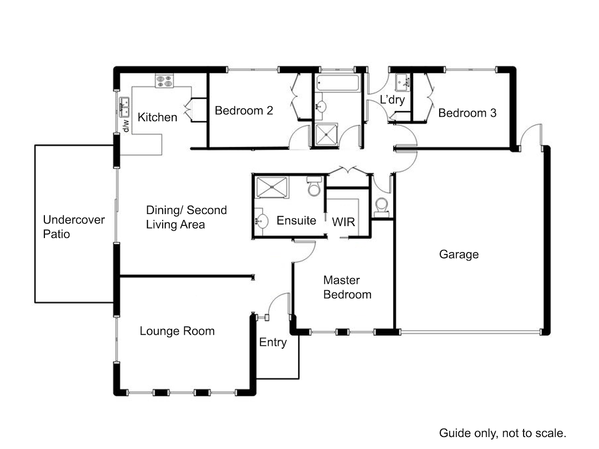 The master bedroom of the home is large and features a good sized walk in robe which leads into the oversized ensuite. The ensuite is huge and is well above the average ensuite size. The other 2 bedrooms of the home both feature built in robes.