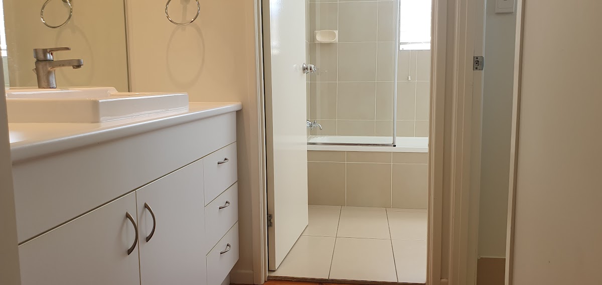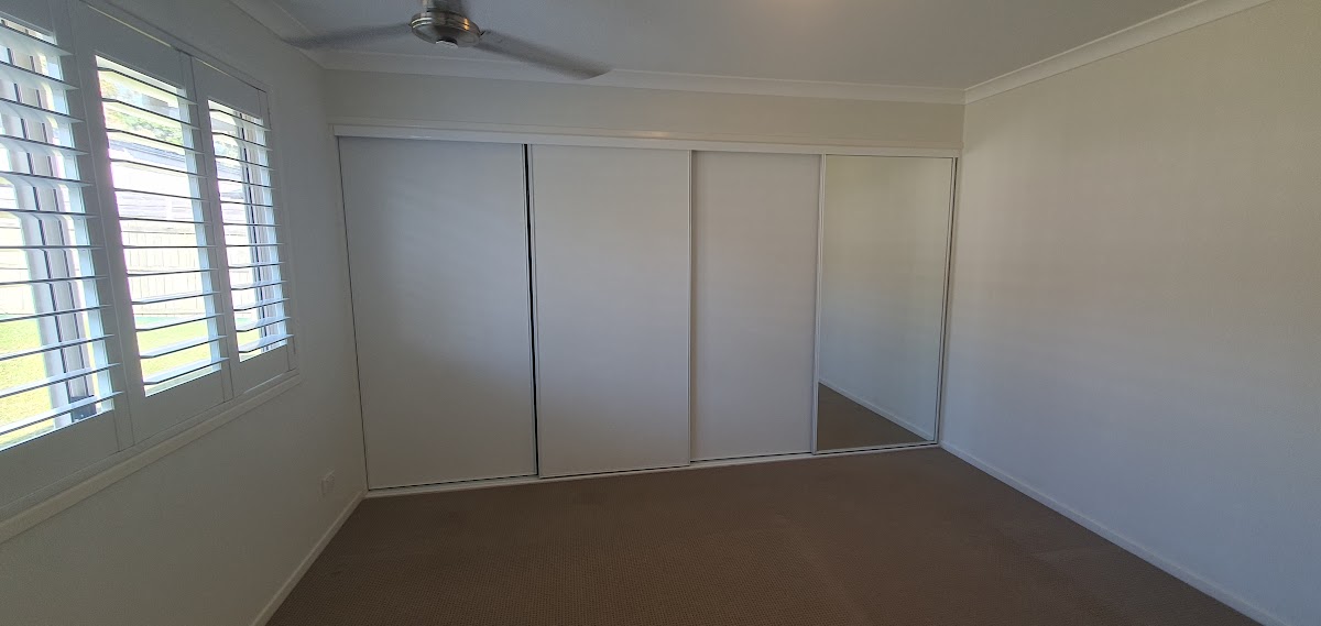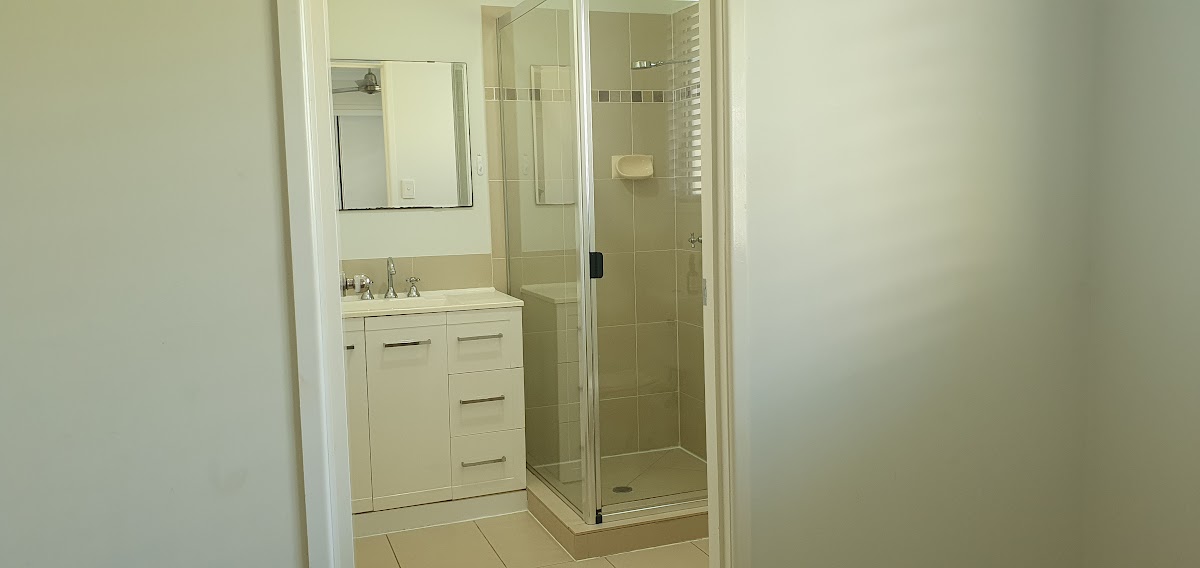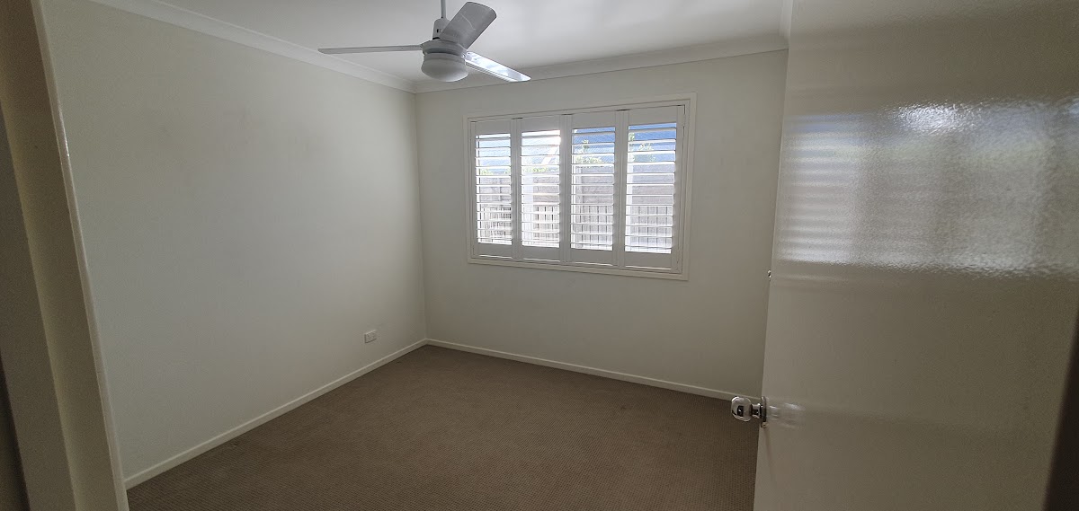All four bedrooms are carpeted with ceiling fans and have built-in wardrobes. The master bedroom has its own ensuite. The second bathroom is spacious and modern, with a separate bath and shower.