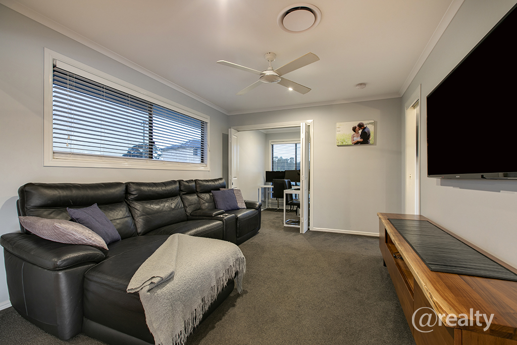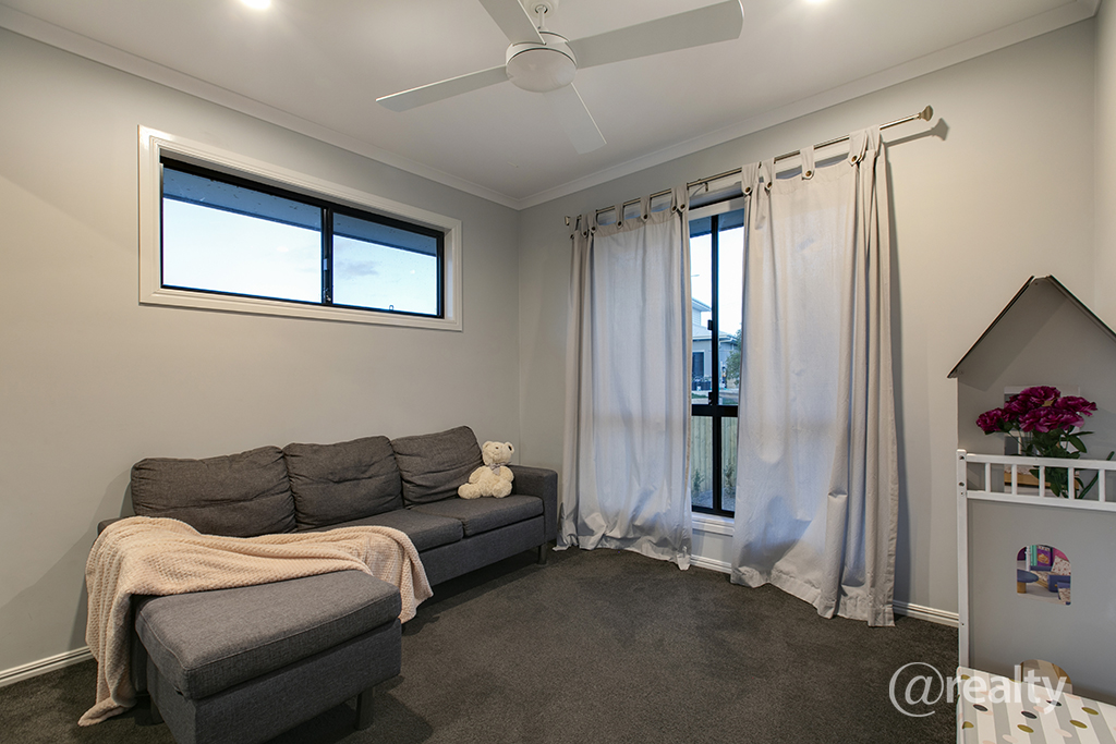 Back inside… from here the home quite literally unfolds before your eyes. Parents Wing or Children’s Wing… Parents wing I hear you say… YES! Enjoy your own private parents retreat/lounge room area closed off from the main living area by bifold doors, it is through here that you will discover the separate study and master bedroom which is complete with ensuite and walk in robe and your own private access to the deck!