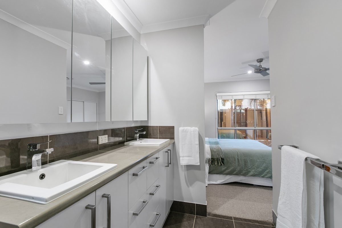 All three bedrooms are generously sized, each fitted with split system air-conditioning for year-round comfort. The master suite enjoys a lovely outlook over the pool, creating a peaceful retreat feel, and features a stylish ensuite along with excellent separation from the other bedrooms. A spacious second bathroom services the remaining rooms.