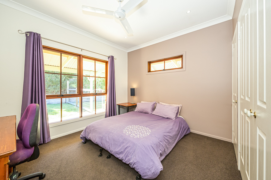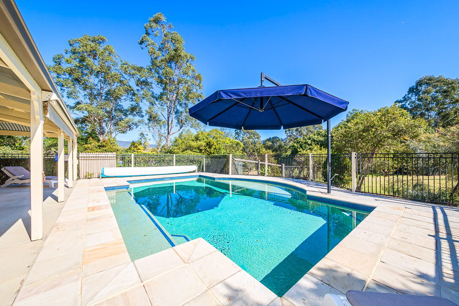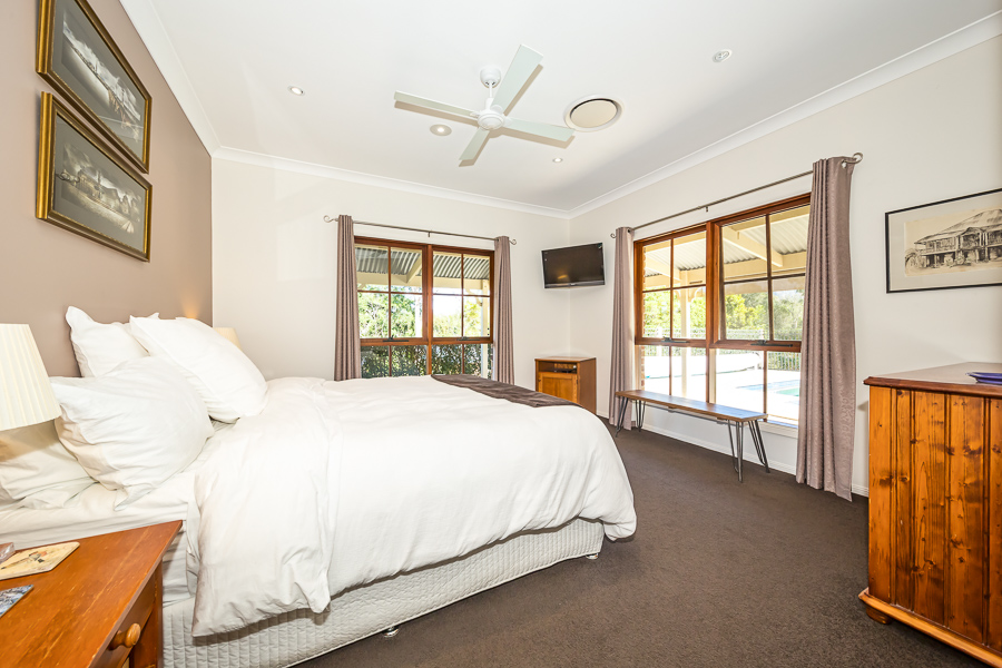 There are five large bedrooms, two bathrooms and an open plan kitchen/dining/living area with beautiful views to the outdoors. A wrap around balcony provides shade and is a great area to sit and watch the birds and your own country vista. The in-ground swimming pool provides fun in the sun and an outdoor shower has been provided.