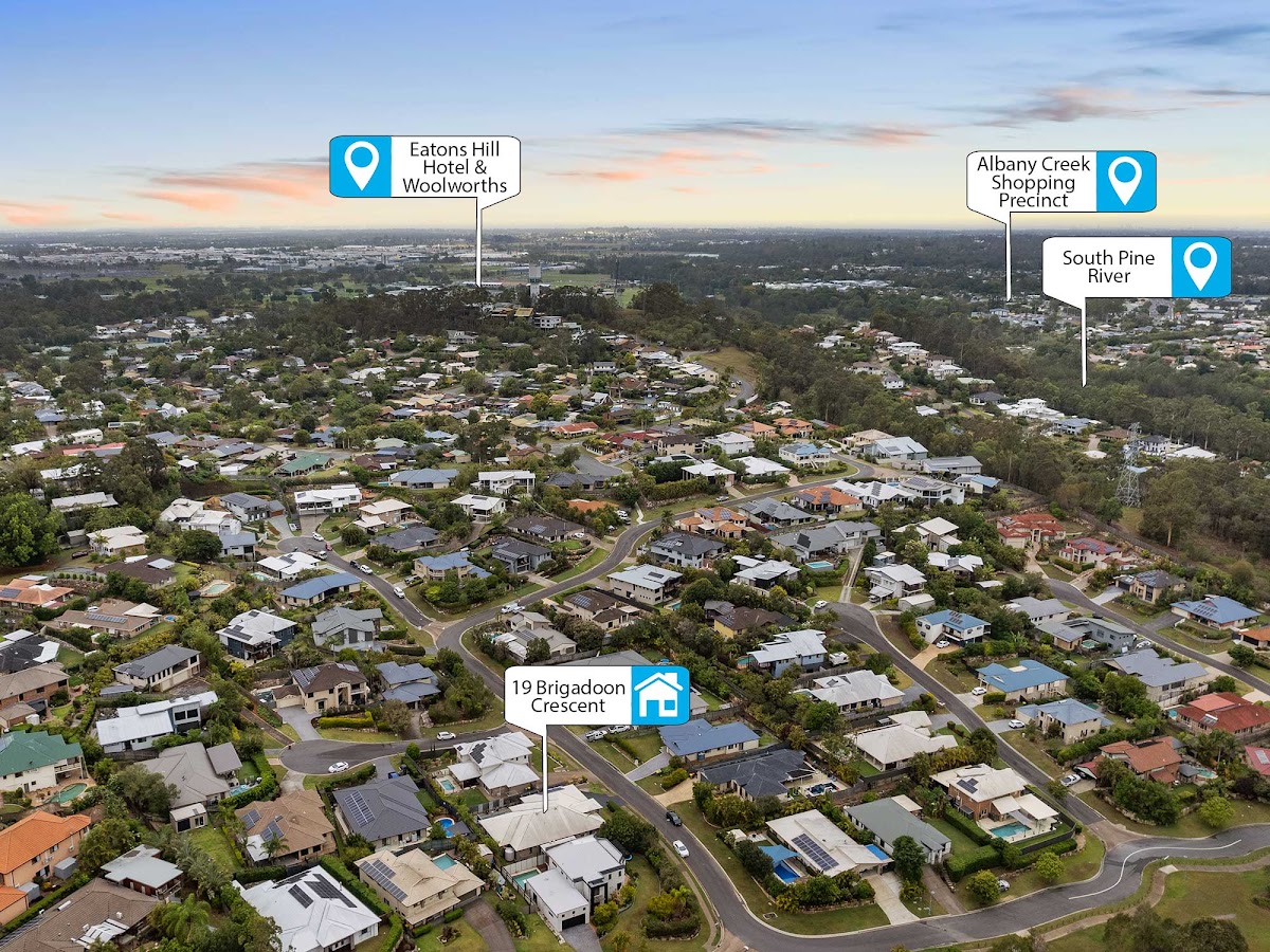 Far from your average home, this is one of the best properties on the market in the area. It’s just a 200m walk across the park and past children’s playground equipment to a Brisbane City bus-stop (routes 359 & 357 – to & from Queen St, Brisbane CBD). These buses also take you (or the kids) past the following nearby locations and connect to many private school bus services. Shopping is convenient, only 1.9km to the local IGA, bakery, bottle shop and medical facilities. For larger weekly shopping or entertainment, the Eatons Hill Woolworths shopping centre and the Eatons Hill Hotel are just a 3km drive (or 1.5km walk) away. The schools within catchment are both highly regarded by families, and only a 1km walk to Eatons Hill State School (Primary) and just over 5km to Albany Creek State High School. Nearby walking paths and cycle tracks wind along the banks of the South Pine River and link to several large parks and a dog park.