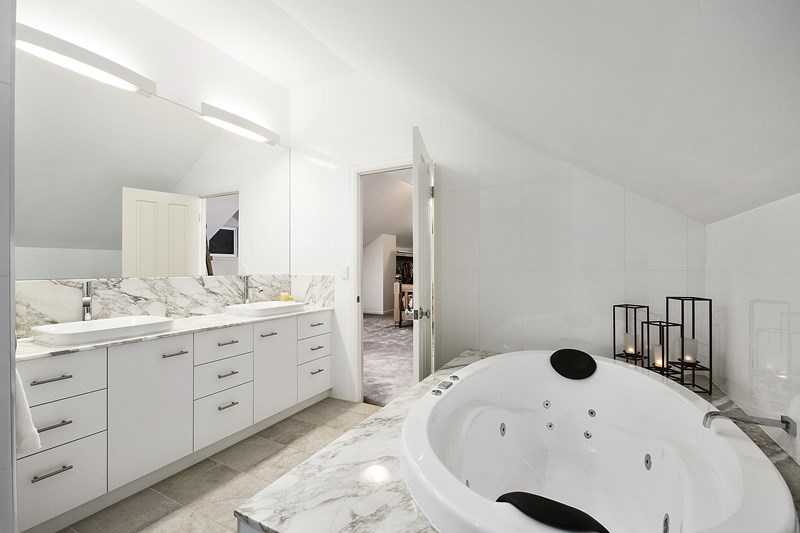 En-suite has double basins, spa bath, plus double shower area