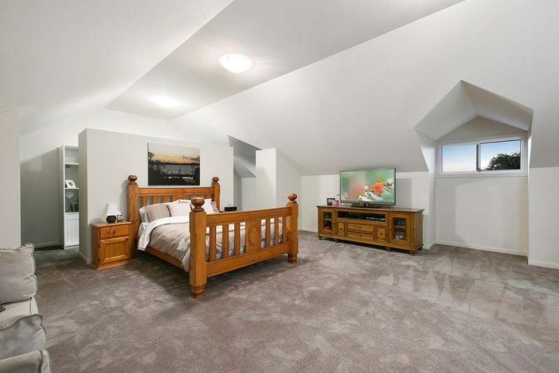 UPSTAIRS – consists of the super sized master suite – which can house the largest of beds, a relaxing area for Mum and Dad plus a study nook if required