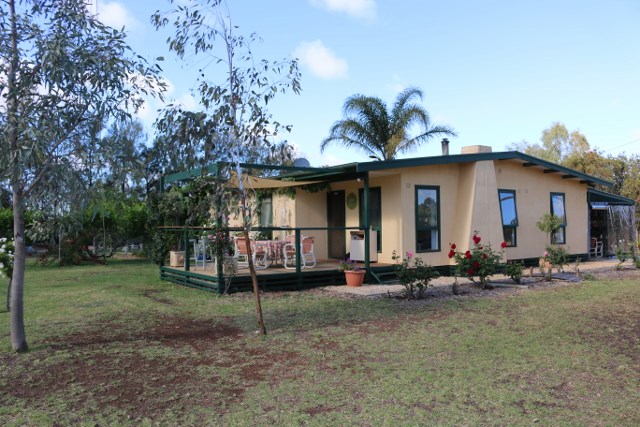 Been looking for a place to call home to retire to “with a bit of land” then this home with over an acre of land will keep you as busy as you want. The comfortable 3 bedroom home has a beautiful relaxing garden setting and is under 10 km’s from the town centre of Waikerie. With raised vegetable beds, a small orchard containing a good variety of fruit trees and a great chook pen you are on your way to a healthy self-sufficient lifestyle with your very own fresh home-grown produce. The home has open plan kitchen and lounge with a great deck for you sit and enjoy breakfast. The dining room is adjacent to the kitchen and a convenient servery window allows conversation while meals are being prepared. The kitchen is modern with plenty of bench space. There are two other rooms at the rear of the home that are currently utilised as an office area and a TV room. Outside there is good sized shedding with workshop for the hobbyist or handyman and when you just want to relax there are a number of out of the way garden nooks for you to relax and enjoy.