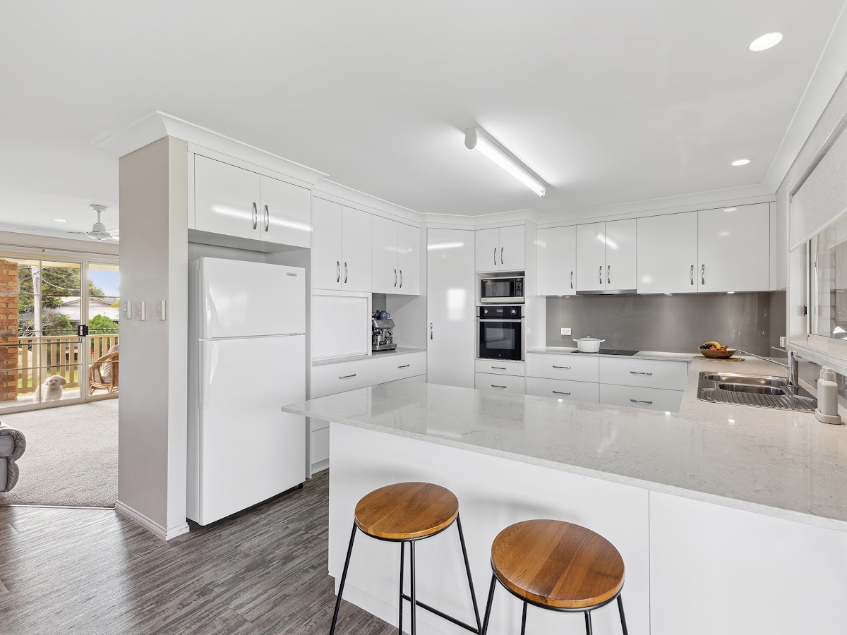 The renovated 3-way bathroom is the next big thing. No more cramped bathing, as here we have a luxurious sized shower, tiled to the ceiling with a recessed niche, and twin head shower fittings. The colour palette is fresh and clean with a modern vanity and separate toilet. Surrounding the bathroom are three Queen/King sized bedrooms, all with built-in robes, fans, double blinds and the master with its own air con for comfort.