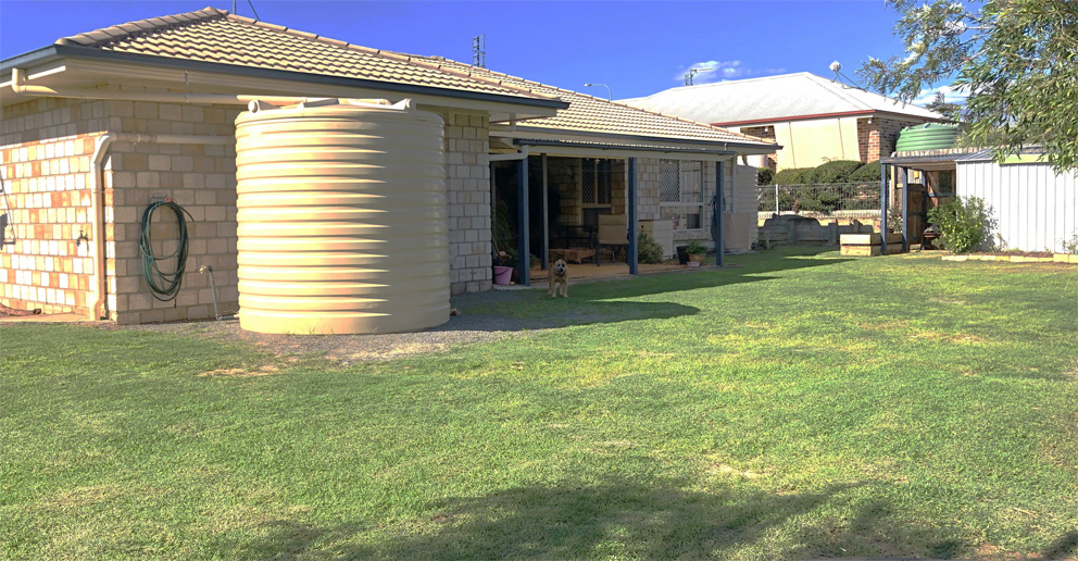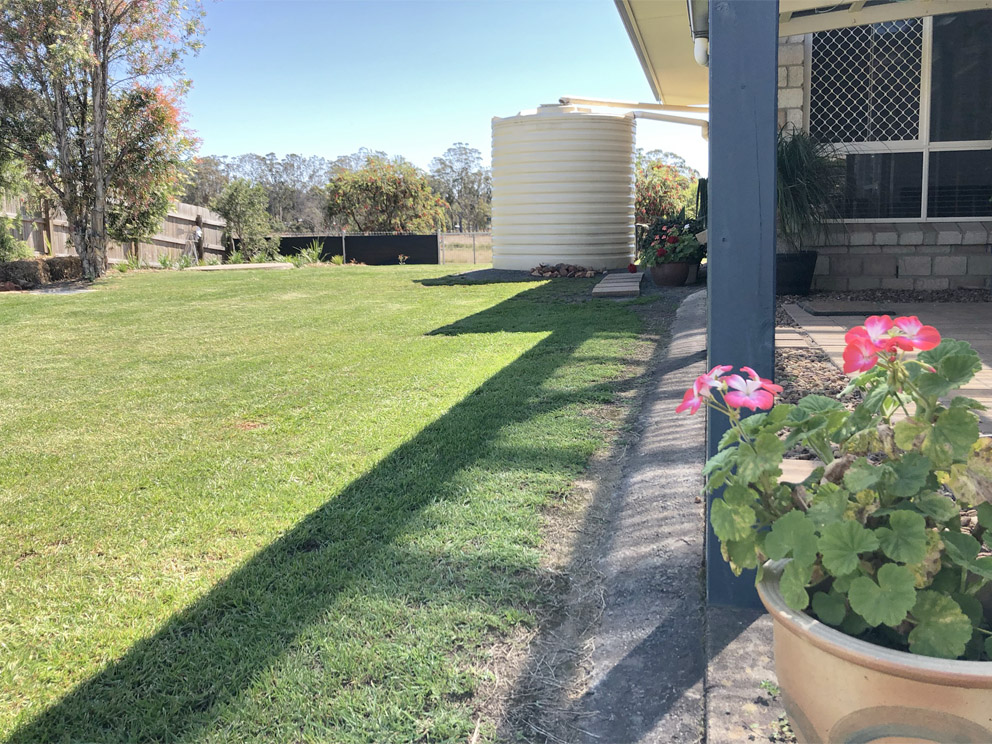 -Easy care shady garden, drip irrigation, 2 rain water tanks.