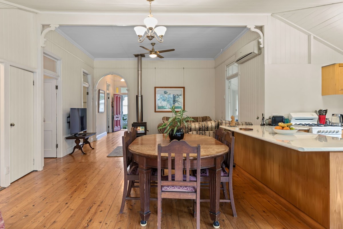 This federation Queenslander is loaded with character and charm with period features you would expect, from the wide timber flooring to soaring ceilings with classic mouldings and pretty stained glass windows.