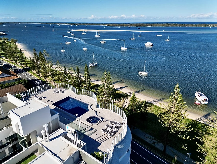 Residents and guests can take advantage of the full range of facilities, including 2 swimming pools within the building: one on the rooftop, offering breathtaking views of the Gold Coast, and another on the ground level. A great cafe, gymnasium, sauna, and a games room. Enjoy morning walks along the Broadwater and pick up your morning coffee at your local “L’Estranger” cafe on the ground floor.