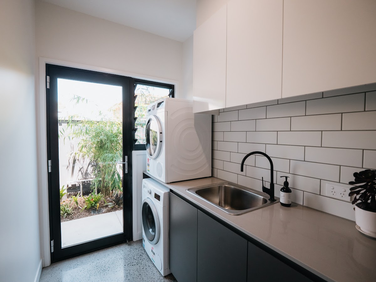 • Large open plan kitchen and living area with split aircon and fans.