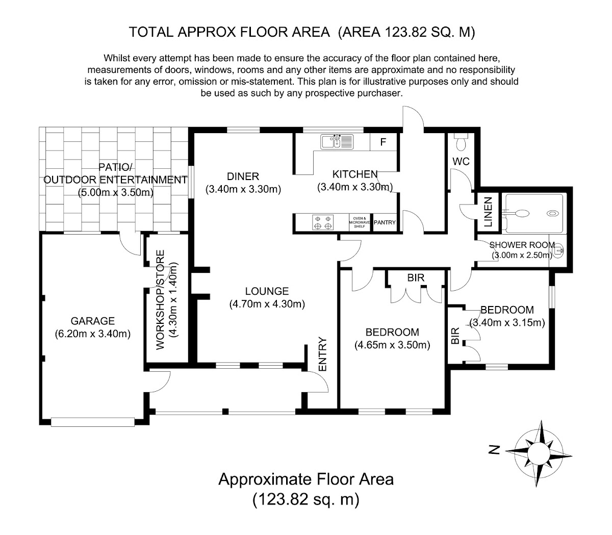 There is a pretty garden with lawn and birch trees at the front, raised beds and paved pathway at the back, plus access to the garage and storeroom via personnel door off the patio.