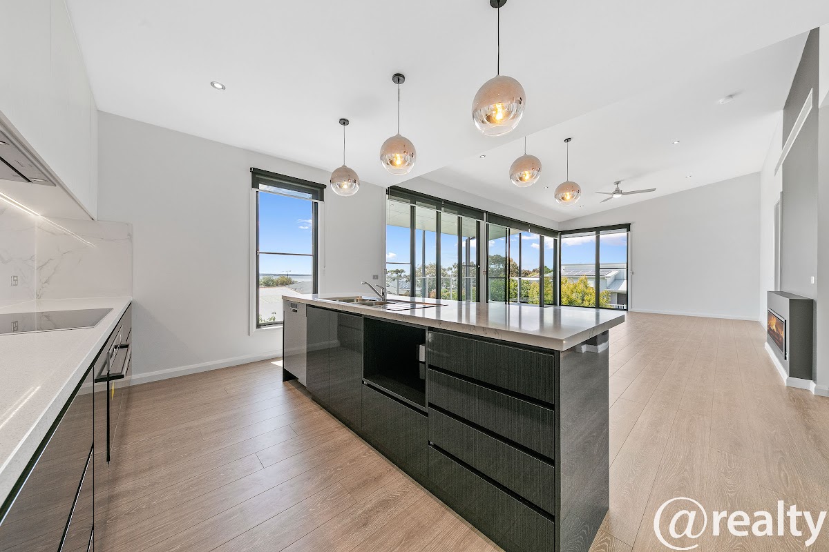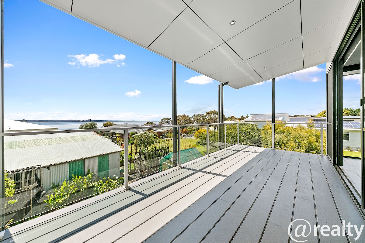 Conveying exceptional architectural flair, this custom-designed residence is brought to life with a selection of superb design elements and a low maintenance garden. Comprising 4 Bedrooms and 2.5 Bathrooms, the open-plan design upstairs welcomes sun-drenched living with double sliding doors opening to a north-facing entertaining balcony offering amazing water views of Westernport waters and French Island. For those winter nights, there is an electric log fireplace, ducted heating and cooling to the entire home accompanied by stylish fans for all the rooms.