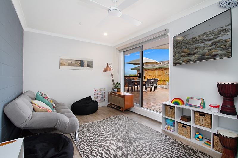 Rarely do you walk in through the front gate of a property and just get a really good comfortable & relaxed feeling even right in the front yard!! This one has it all! Location, atmosphere, entertainer for all occasions or just a lazy arvo drink on the deck while watching the games or kids practice on the oval. There is even a bar right around the deck!! Renovated and secure, this lovely east facing duplex is bright, breezy and totally private. If you do not know the location, please take some time to explore Google Earth and you will be amazed by the facilities surrounding this property and all within a 15min walk to the beach! Park with canal and playground and loads of walking and bike tracks … so much fun all surrounding the property!