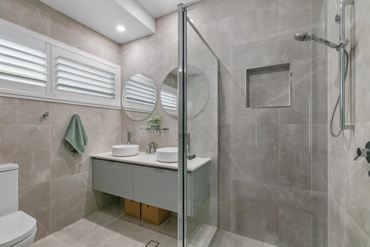 The master bedroom is a true sanctuary, where cosy meets luxurious. Thoughtfully designed with every detail in mind, this serene retreat features Luxaflex sheer curtains and elegant plantation shutters, perfectly framing the natural light. A VJ feature wall adds texture and warmth, creating a timeless yet contemporary aesthetic. Whether you’re starting your day or unwinding in the evening, this space provides the perfect balance of comfort and style.