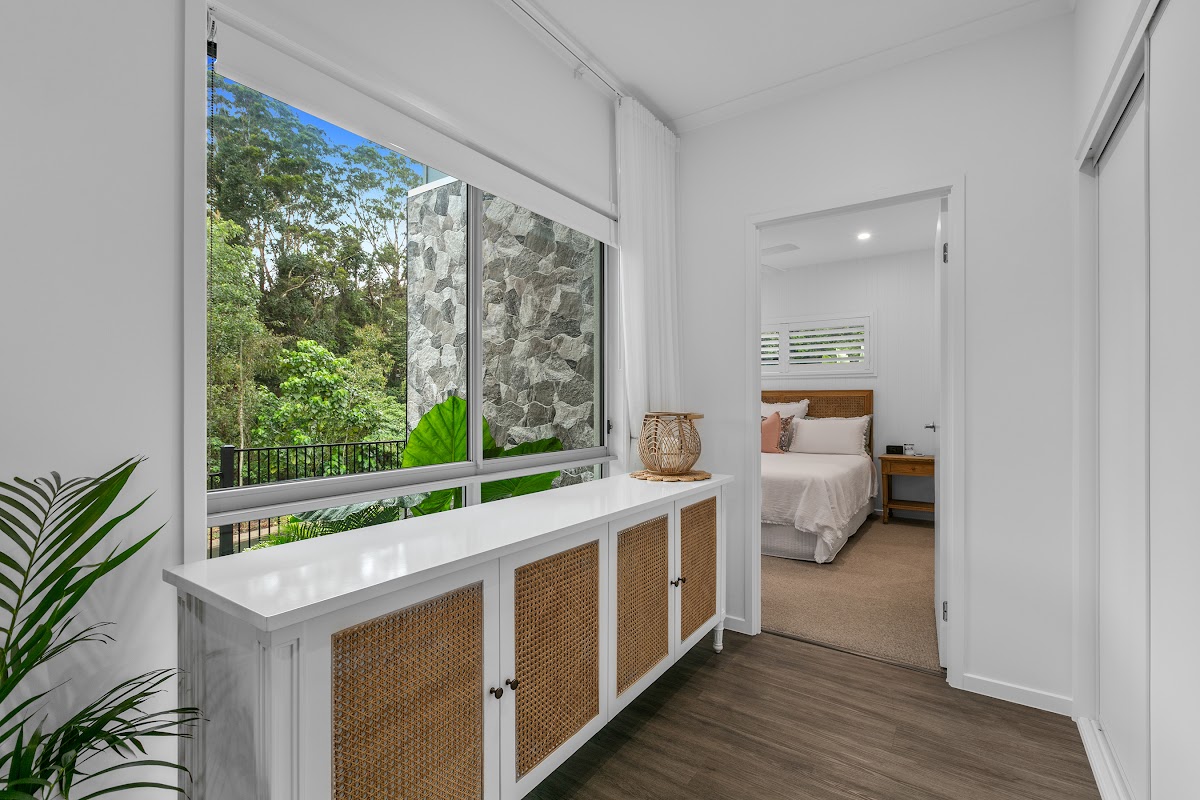 Welcome to your dream home—this stunning property is perfectly positioned on an elevated allotment, offering a serene yet private outlook over lush native rainforest parkland. This thoughtfully designed property combines high-quality finishes with functional elegance, making it a true standout.