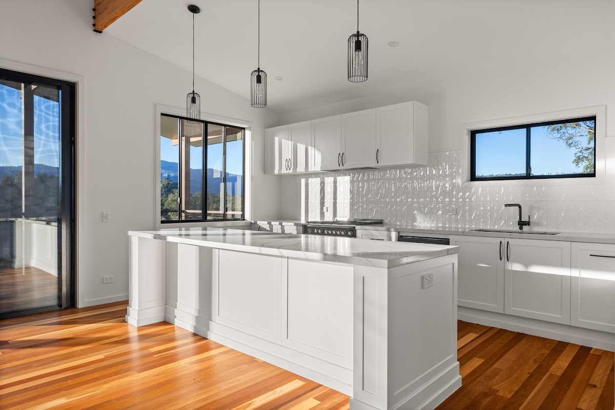 The home is thoughtfully laid out to maximise both comfort and functionality. At the heart of the home, the designer kitchen stands out with 40mm premium stone benchtops, large freestanding gas stove, custom joinery, and high quality finishes. A solar-passive design, complete with eastern-facing high-set celestial windows, ensures energy efficiency and year-round comfort.