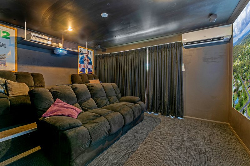 – Home cinema with stepped flooring, projector and surround sound system