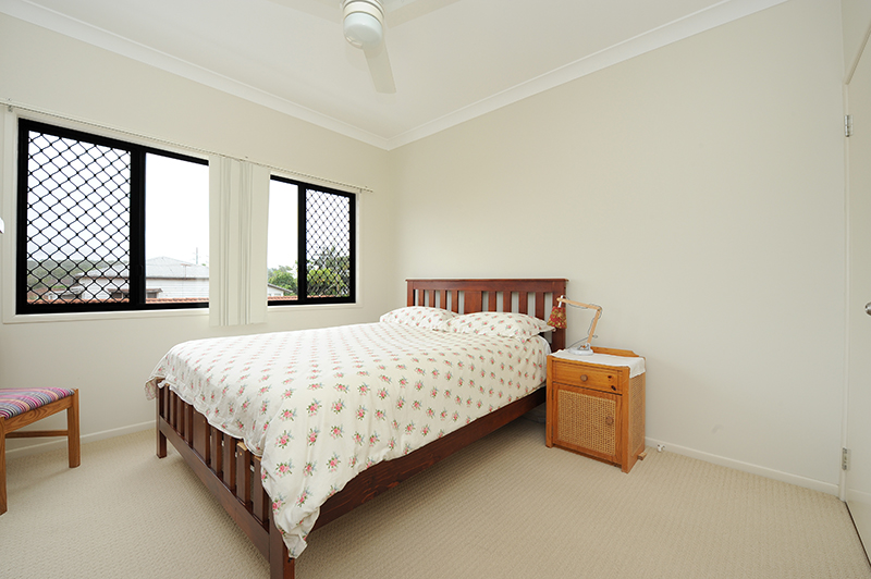 A gorgeous wooden- look staircase is in perfect condition leads you to the other two bedrooms, one with ensuite. Both have built in robes. You can feel the lovely breezes, and it is surprisingly cool upstairs. All of the bedrooms have fans and security screens