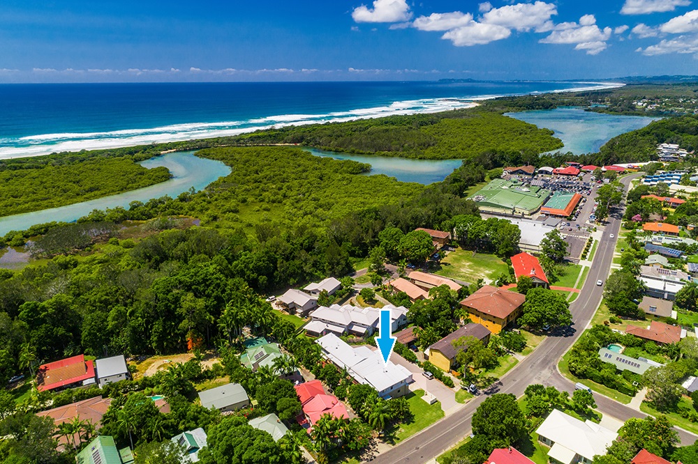 Enjoy the benefits of coastal living in a central location, this chic abode is just 1.2 kms to the beach and 5 minutes easy walk to Ocean Shores Shopping Village. Modern 3 bedroom townhouse spread over two levels, in well maintained complex of 4 close to Coles, medical centre, tavern and cafes. With covered, north facing timber decks, fenced yard and open plan living, you could work from home or catch the bus to Tweed, Byron or Ballina. Cycle into Brunswick Heads along sealed footpaths and frequent the New Brighton weekly Farmer’s markets.
