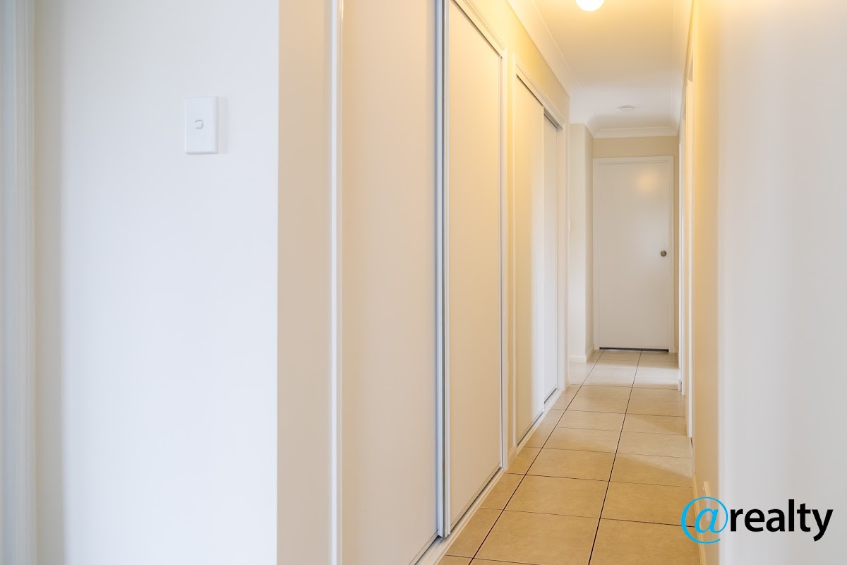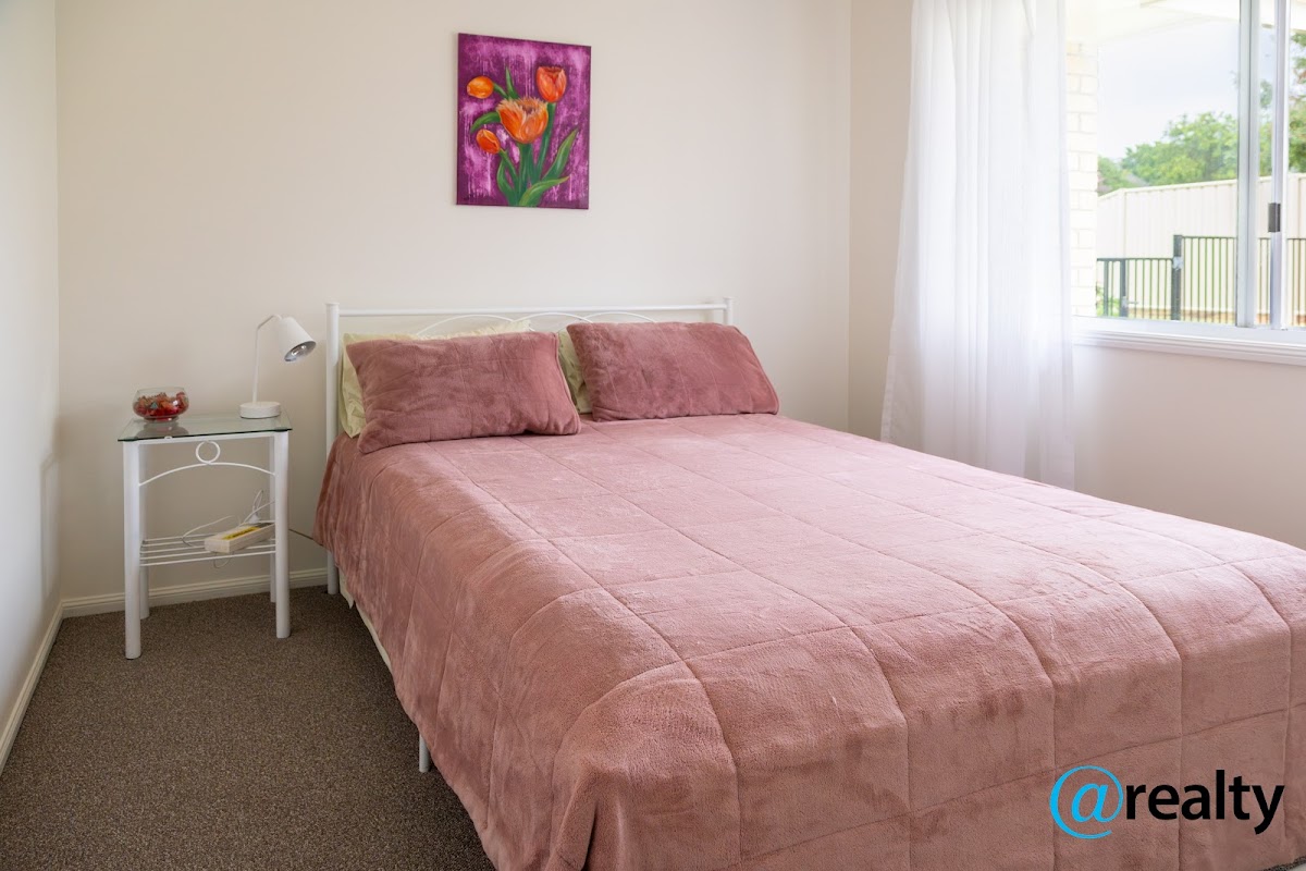 The main living zone features a large split system air-conditioner. The bedrooms include built in robes, and the master bedroom includes an ensuite and built in robes.