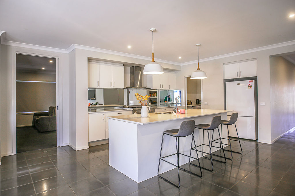 The attention to detail in the kitchen, with its stone benchtops and ample storage options. The inclusion of a large butlers pantry gives the extra storage space for a large family.