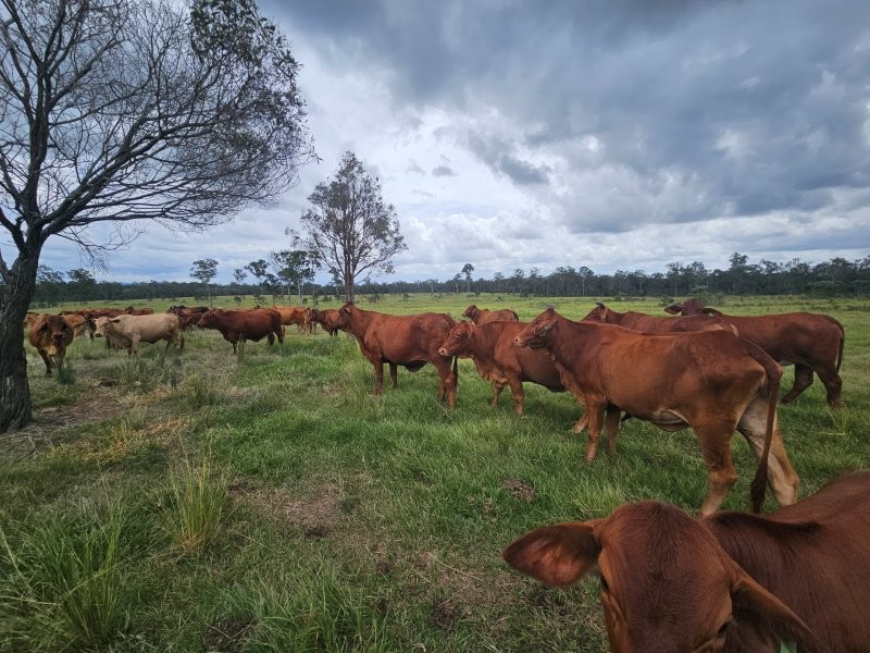 The current owner is running a heard of red Brahman and Droughtmaster cows and calves. The property is fenced into 9 paddocks with a lane way system running to the stockyards which can handle a 100 head of adult cattle, plus an undercover vet crush plus an adjoining shed used for storage of stock feed, chemicals etc.
