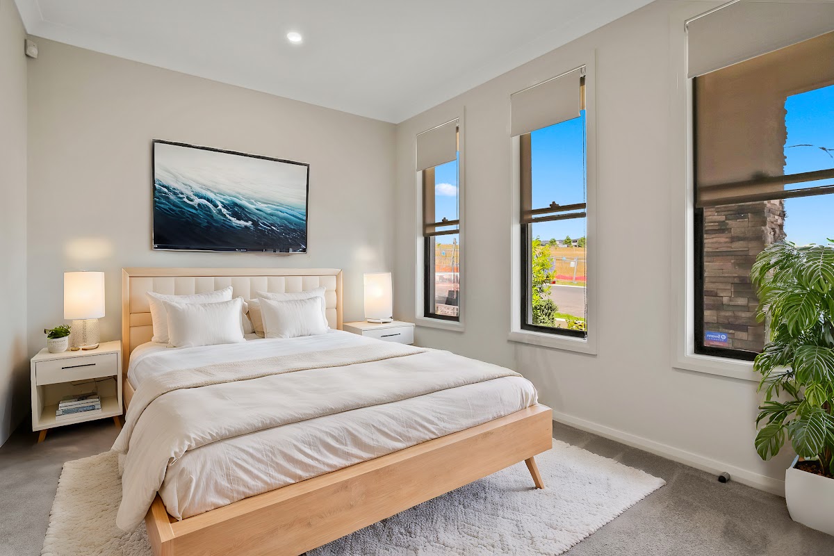 -Master bedroom with ensuite, walk-in robe, ceiling fan and motorised blinds.