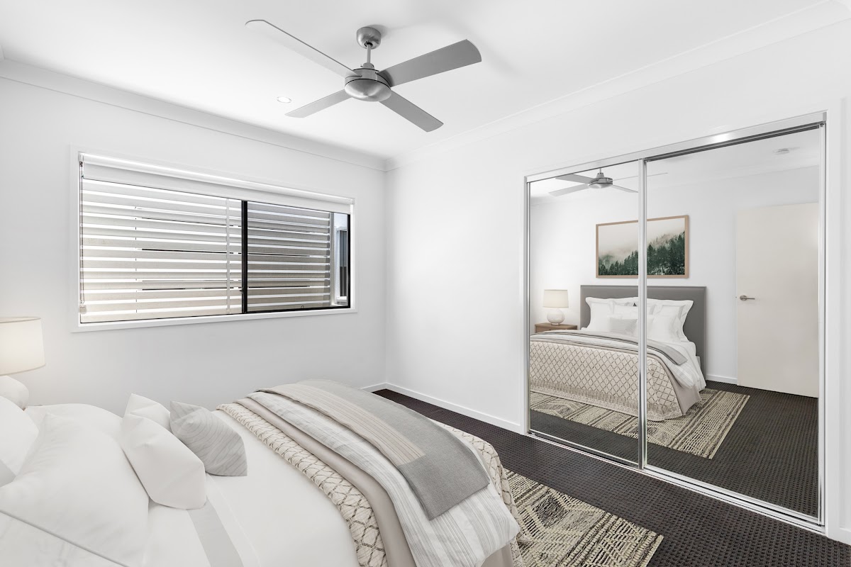 • Second bedroom with built-in wardrobe and mirrored doors.