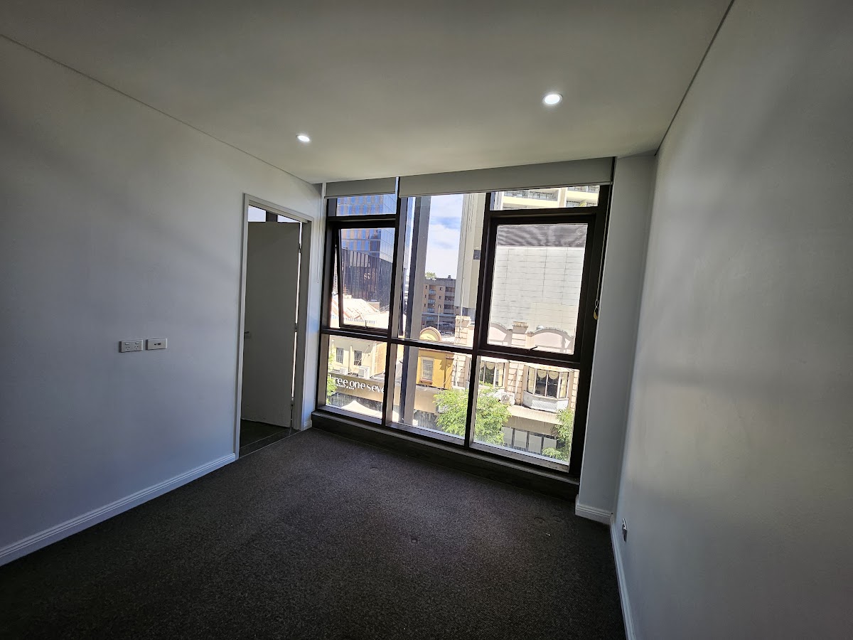 Discreet entrance from Church St and with balcony view to Parramatta CBD