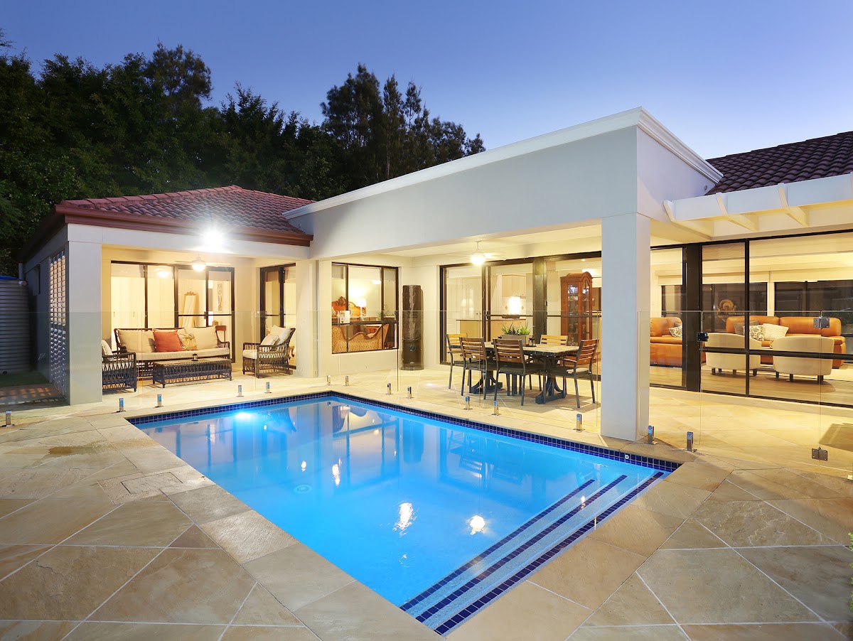 A generous master bedroom with en-suite has a fantastic view through sliding glass doors. The view extends into the lanai and beyond to the alfresco area. Sandstone tiles surround the magnesium pool. Here you can entertain in all weathers as the roof has been extended to provide a seamless roofline; the ultimate all weather entertaining area.