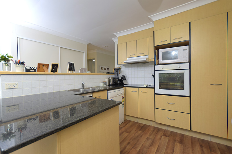 Stylish kitchen with granite bench tops, dishwasher and open plan living and dining all in air conditioned comfort.