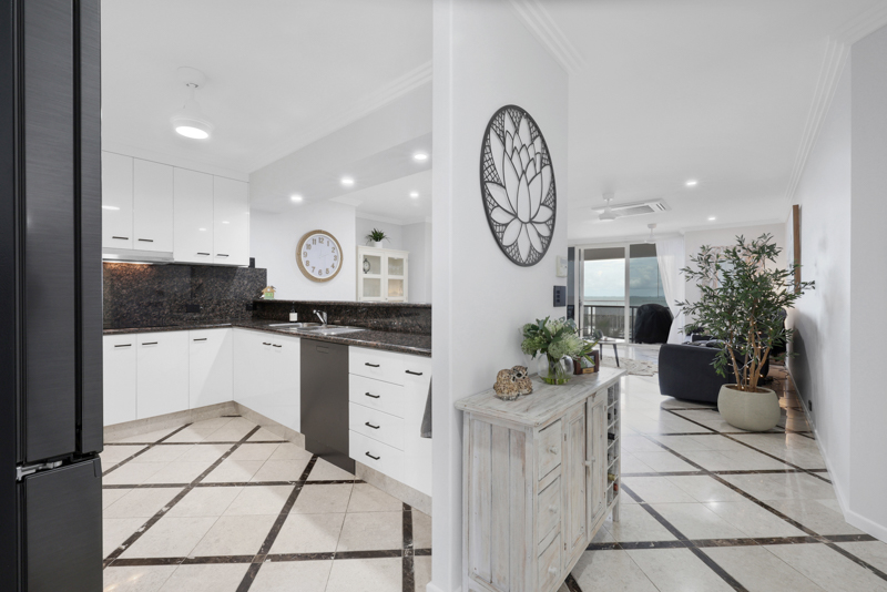 Have you always dreamed of living in a top floor, oceanfront apartment with unspoilt water views? This stunning property is a must see if you are chasing low maintenance, luxury living at it’s best. Sit back and relax whilst enjoying Whales and Dolphins, Sunrises & Sunsets, Sailing boats and endless scenic views. The current owners absolutely love their home but are relocating south so looking for all genuine buyers to inspect now. The apartment has views from every angle and offers open plan living with direct access to the covered, outdoor entertaining area. 3 built in bedrooms with the main having the all essential ensuite with double vanity and ample wardrobe space. It also has sliding glass doors with ocean views and the second bedroom has it’s own private balcony. The main bathroom is super spacious with separate bath to shower and the added bonus of it’s own Bidet. The property presents beautifully with floor to ceiling tiles, quality fittings throughout and the added bonus of 2 undercover, lock up, car parking and storage room. The sparkling in ground swimming pool is perfect for those hot summer days and there is ample room around the pool for a lazy Sunday get together with friends or family. So many extras including Sauna room, air conditioning throughout, direct access to restaurants and walk ways and all of this just a few minutes to the CBD. If you are looking for something that has the benefit of “lock up and go”, this one is perfect. Call Jodie now for your private, on site inspection.