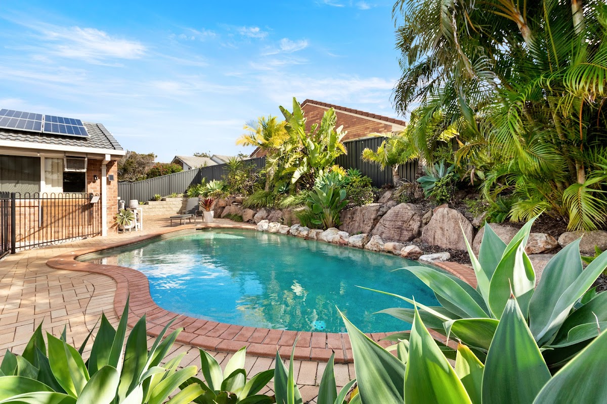 Retreat to the master bedroom featuring its own ensuite, air conditioning, and ample built-in storage. The two additional bedrooms are also air-conditioned with built-ins, carpeted and offer tranquil garden and pool views. With abundant storage throughout, a well-appointed laundry, double remote lock-up garage, and double side access, this home is as practical as it is stylish.