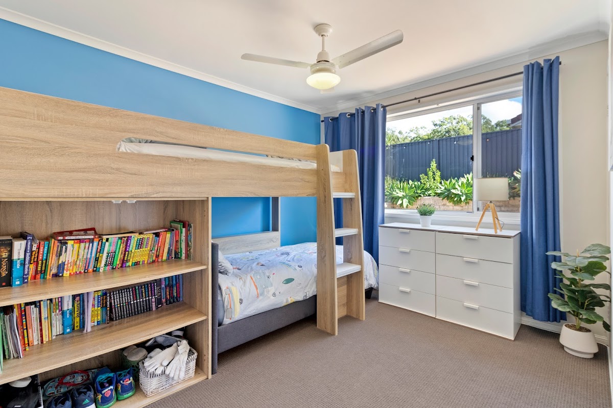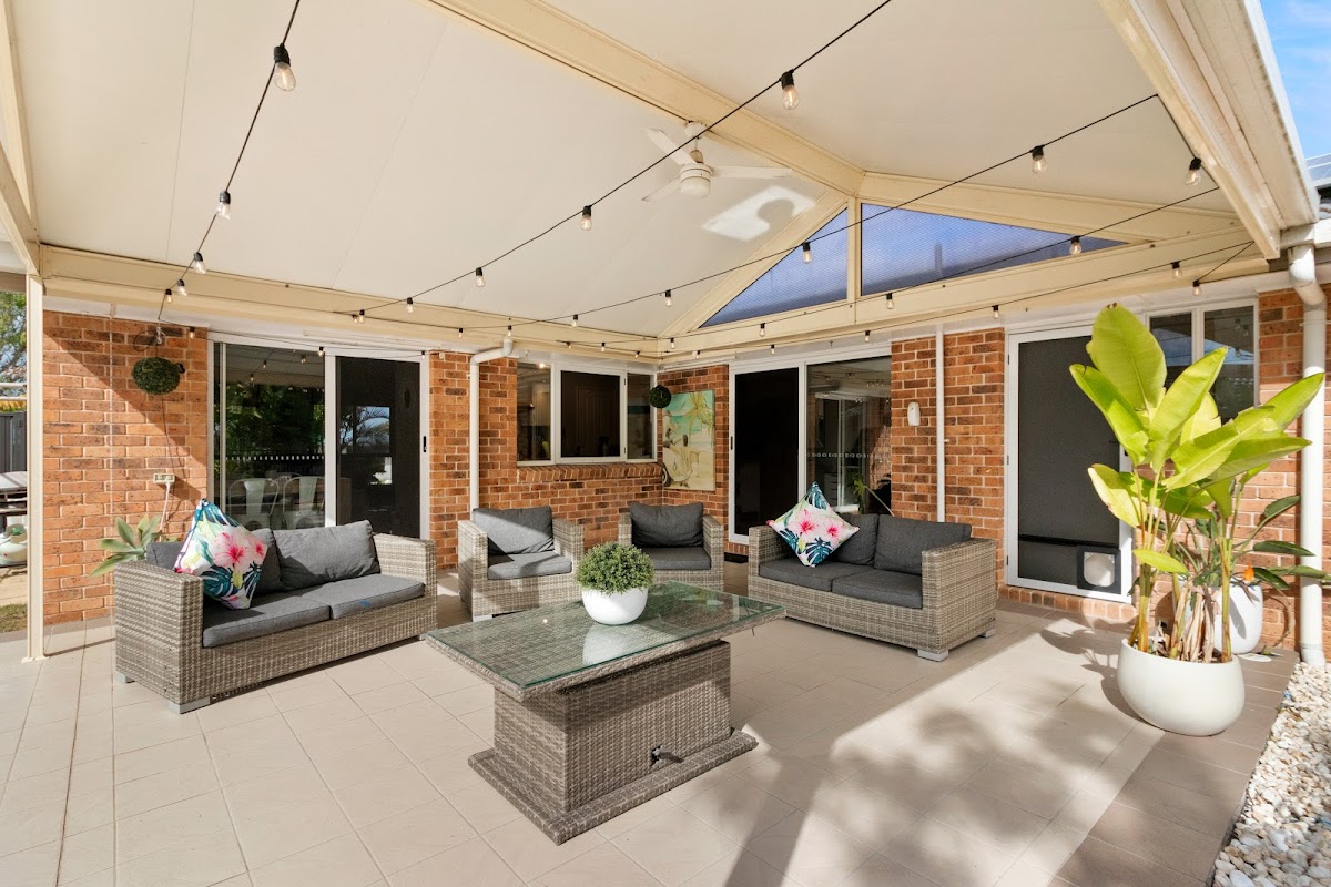 Enjoy the outdoors with a large paved area, an ideal space for the firepit – perfect for gathering with friends and family. Further features include solar panels with a battery storage unit, Crim Safe security screens, and expansive colorbond fencing.