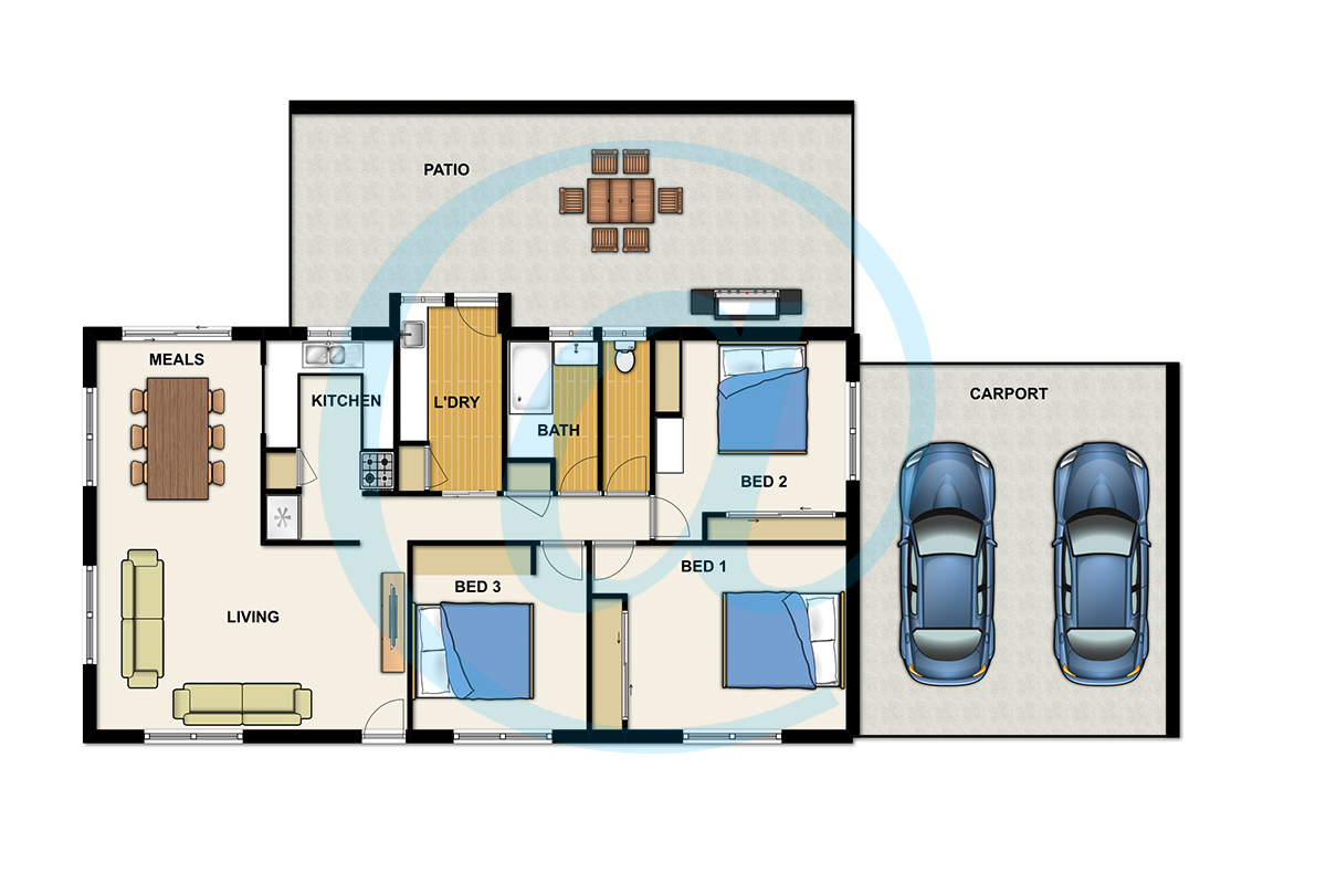 – Open plan lounge and dining leads out to the very large paved courtyard
