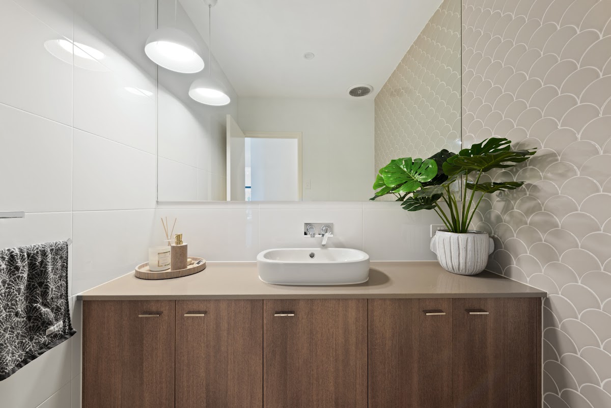 – Master ensuite with floor to ceiling tiles, double stone top vanity , shower niche and seperate toilet