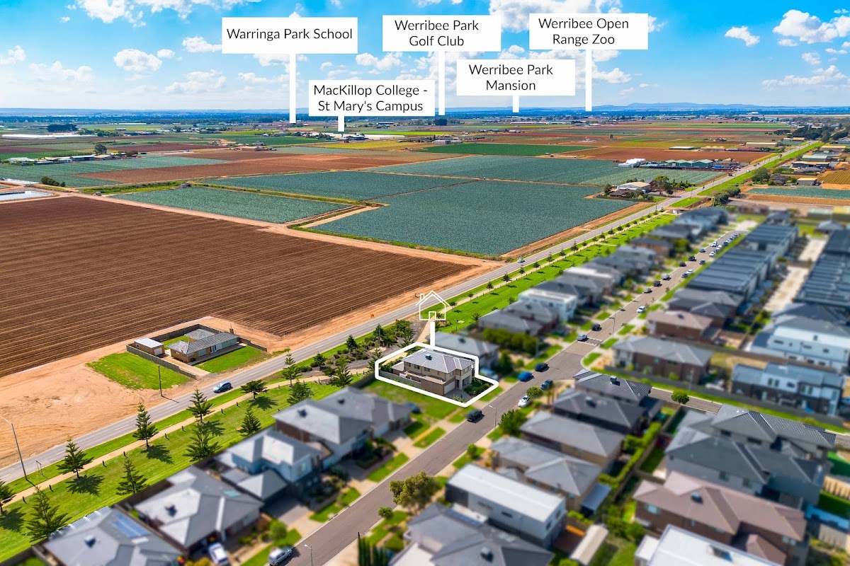 The luxurious master bedroom features a walk-in robe and en-suite, while the additional bedrooms are equipped with built-in robes, providing ample storage. The modern kitchen is a true centerpiece, boasting a large walk-in pantry, dishwasher, and plenty of storage. It opens seamlessly into the dining and main living areas, creating a welcoming space for family gatherings. A formal lounge at the front of the house and an upstairs retreat offer additional options for relaxation or entertaining.