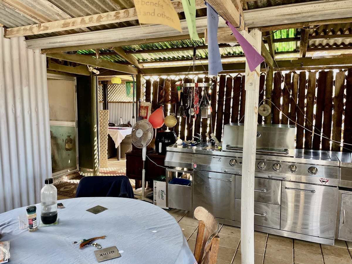 Outdoor entertaining with added bonus of outdoor bathroom, toilet and laundry.