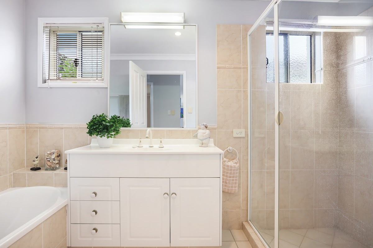 With low maintenance landscaping and an outdoor covered entertainment area, this property has been lovingly cared for and presented. The spacious layout includes two living areas and dining, a renovated kitchen with ample cupboard and bench space, and a large refrigerator space. The white tile throughout plus the plantation shutters gives a flavour of the Hamptons.
