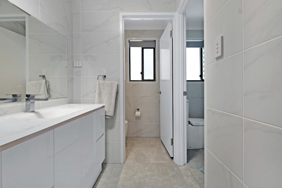 A very modern and practical 3 way bathroom and with a good size shower plus a 2nd toilet.